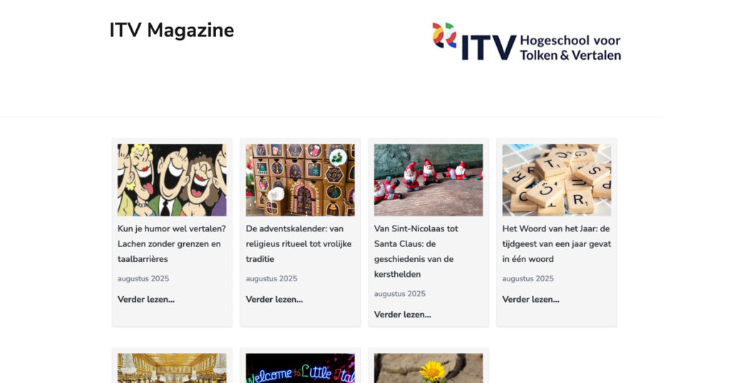 ITV Magazine is een project van studenten en docenten van ITV Hogeschool voor Tolken en Vertalen, die het leuk vinden om te schrijven over talen en culturen en hun kennis over hun taalgebieden te delen met iedereen die daarin geïnteresseerd is. Het project is van start gegaan in februari 2019.